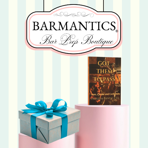 Inside, bar candidates find uplifting support whether redressing well-worn dead ends, or confirming their heading in the right direction. Paulina Bandy, Esq. captures pivotal areas in bar exam preparation which translates into passing performances for her scholars.